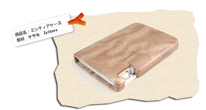 木目も一つ一つ違い、使っていくうちに色合いも自分色に変化していくので世界に一つだけのミンティアケースとしてご使用頂けます。