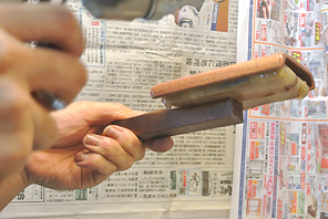 【2】木の繊維とは反対の直角方向に埋め込むようにして木の目(導管)をつぶしていきます。